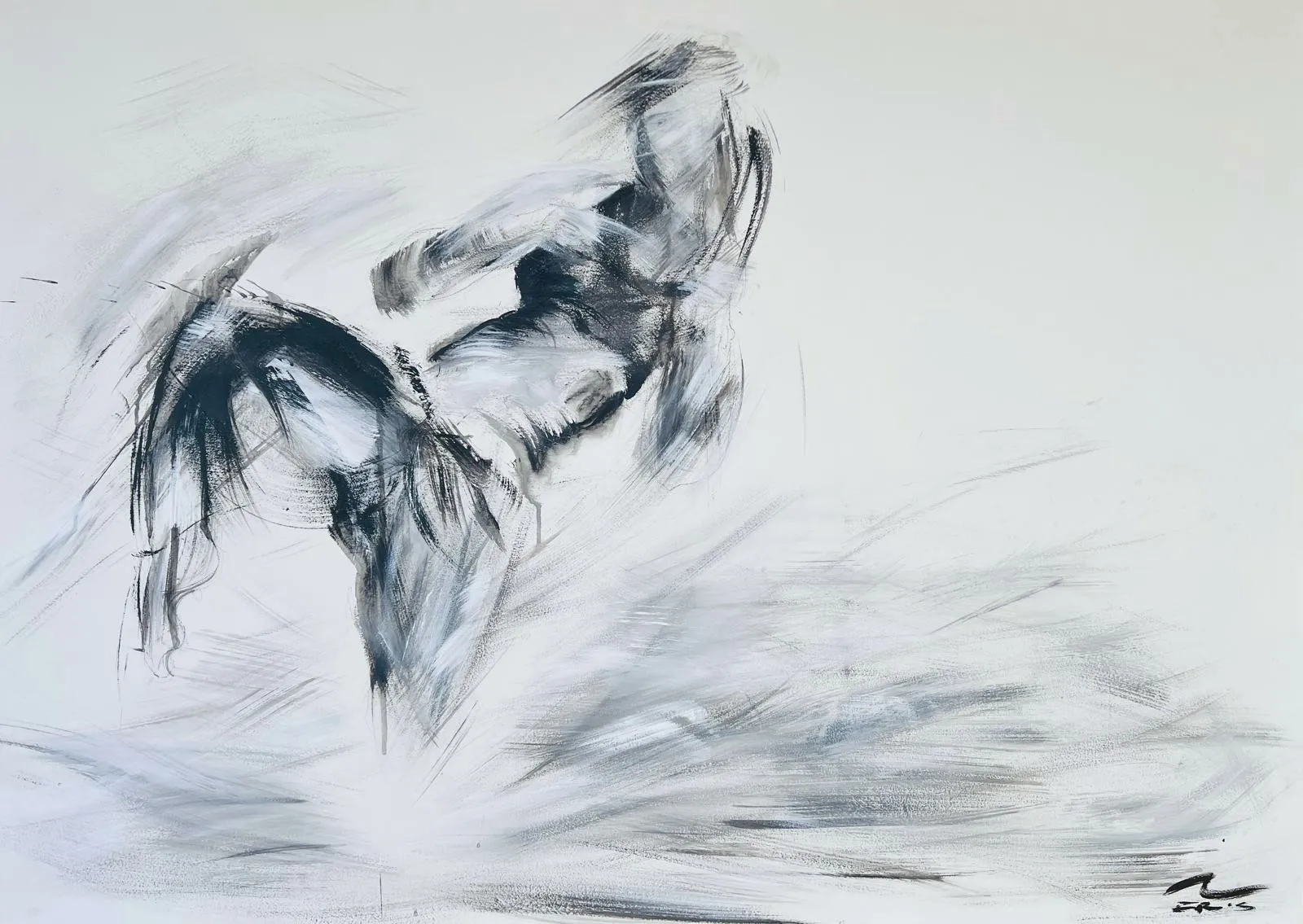 Peinture « Combattante, la puissance du geste IX » – Arts Martiaux – Acrylique sur toile 100,5 x 140 cm
