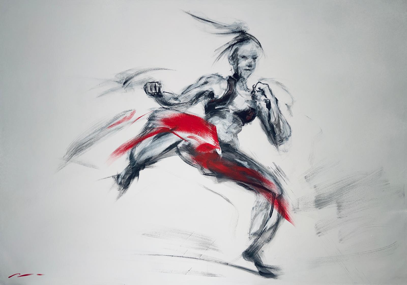 Peinture « Combattante, la puissance du geste VII » – Arts Martiaux – Acrylique sur toile 140 x 200 cm