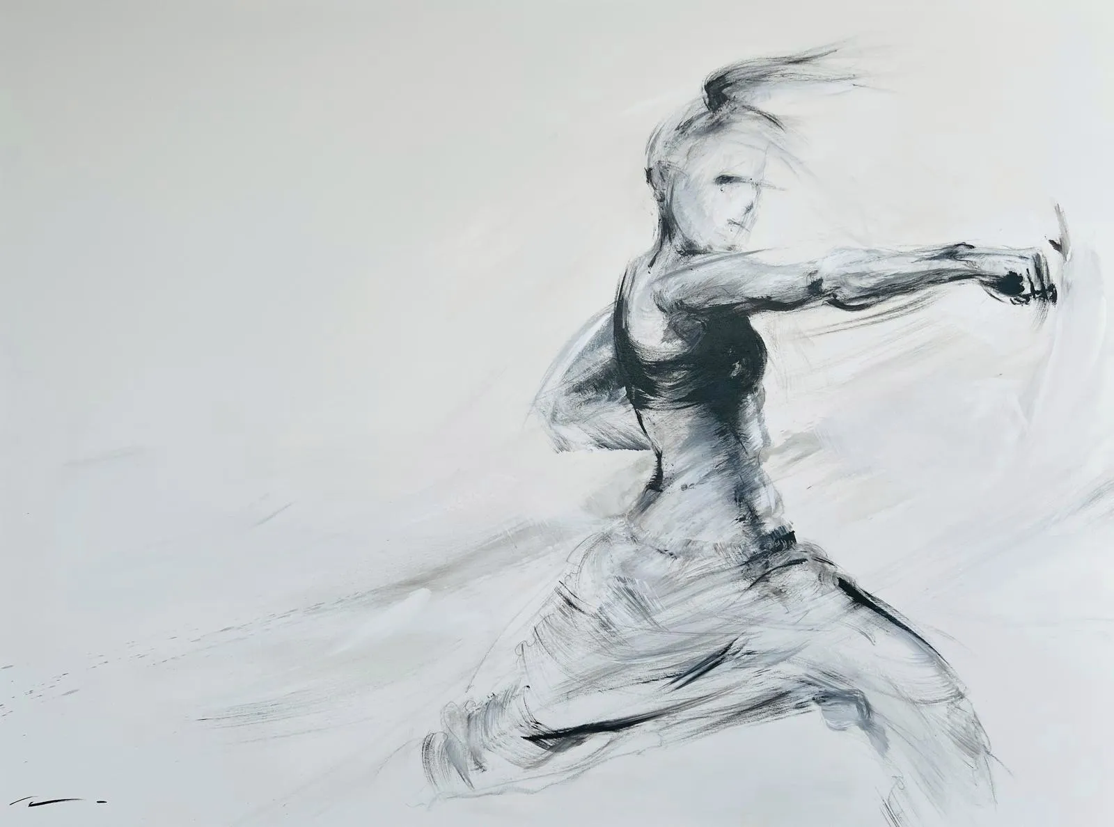 Peinture « Combattante, la puissance du geste VIII » – Arts Martiaux – Acrylique sur toile 97 x 130 cm